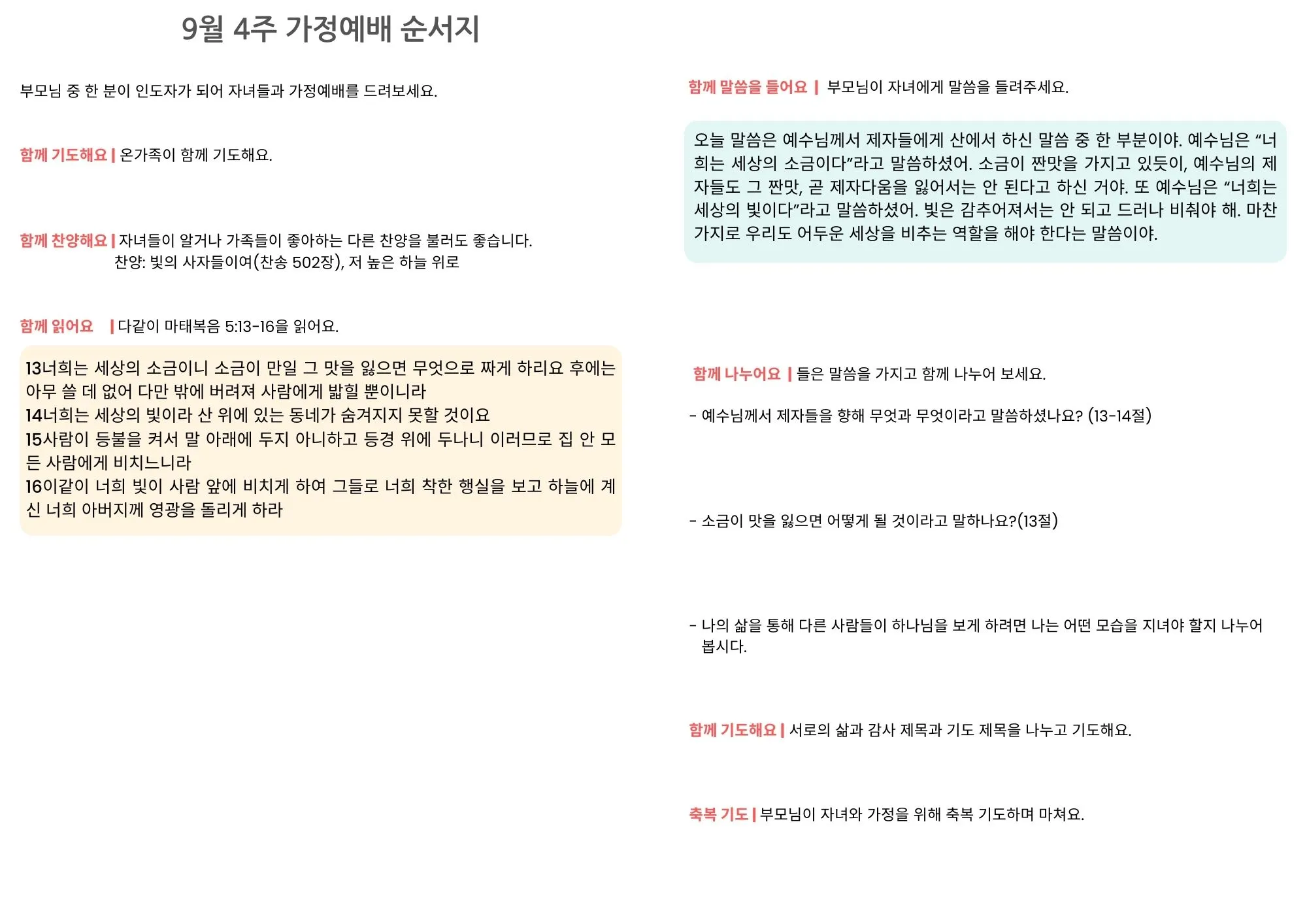 [가정예배순서지] 2025년 9월 4주 가정예배