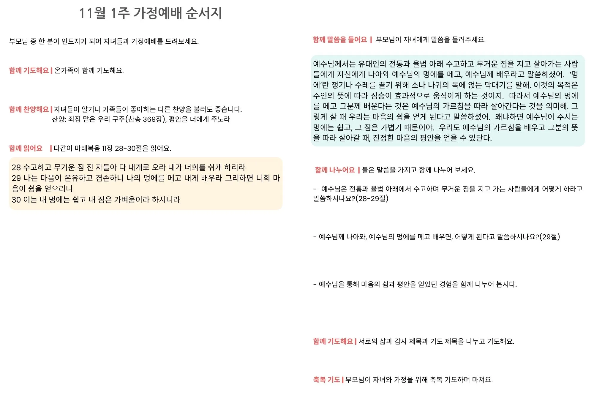 [가정예배순서지] 2025년 11월 1주 가정예배