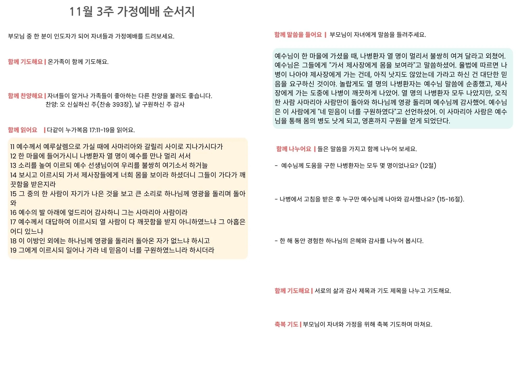 [가정예배순서지] 2025년 11월 3주 가정예배