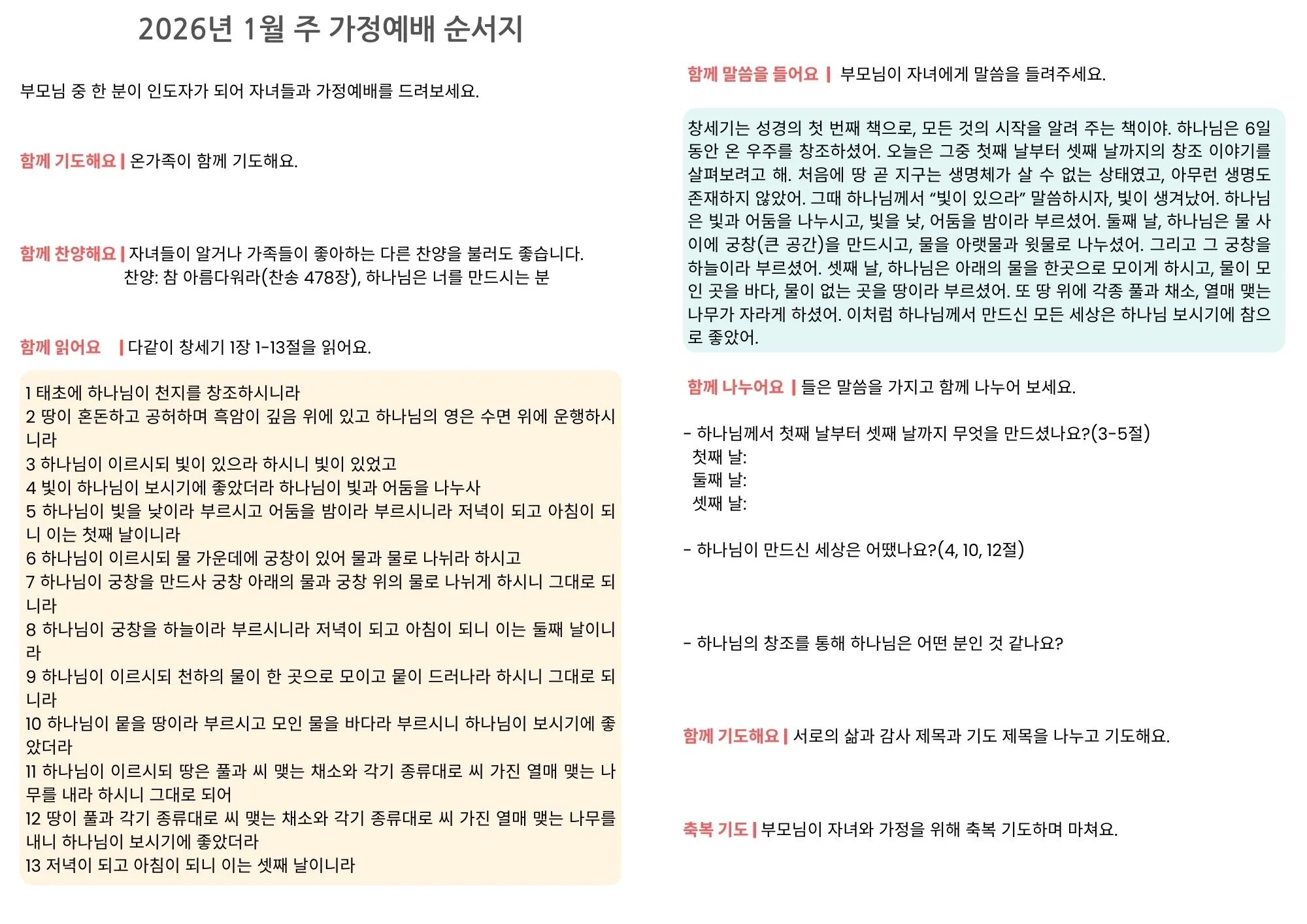 [가정예배순서지] 2026년 1월 1주 가정예배