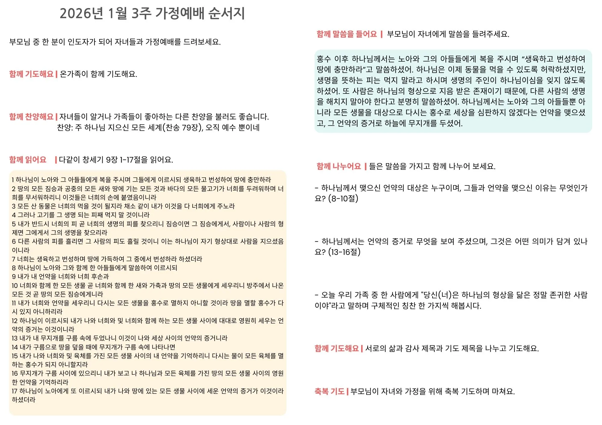 [가정예배순서지] 2026년 1월 3주 가정예배
