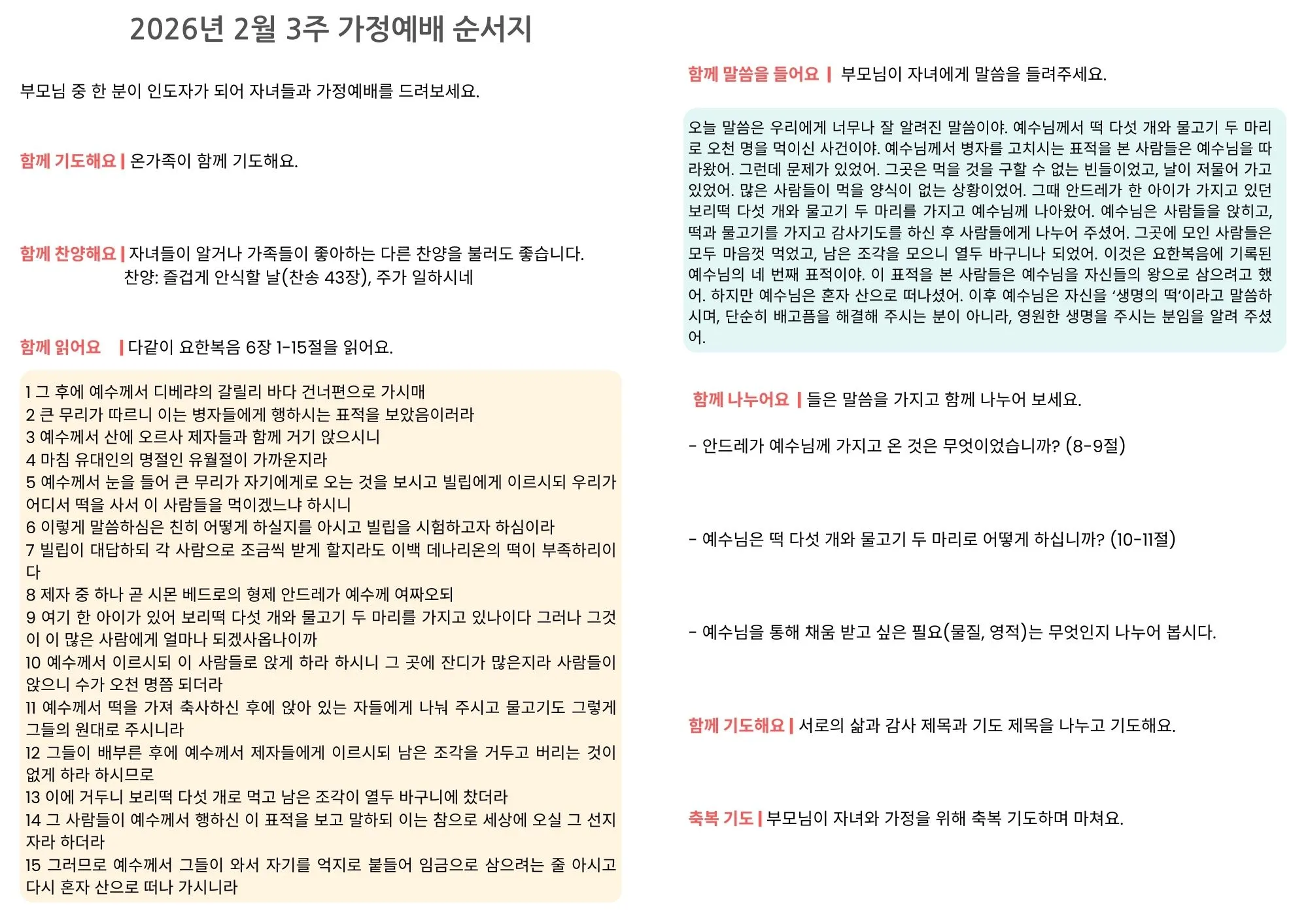 [가정예배순서지] 2026년 2월 4주 가정예배